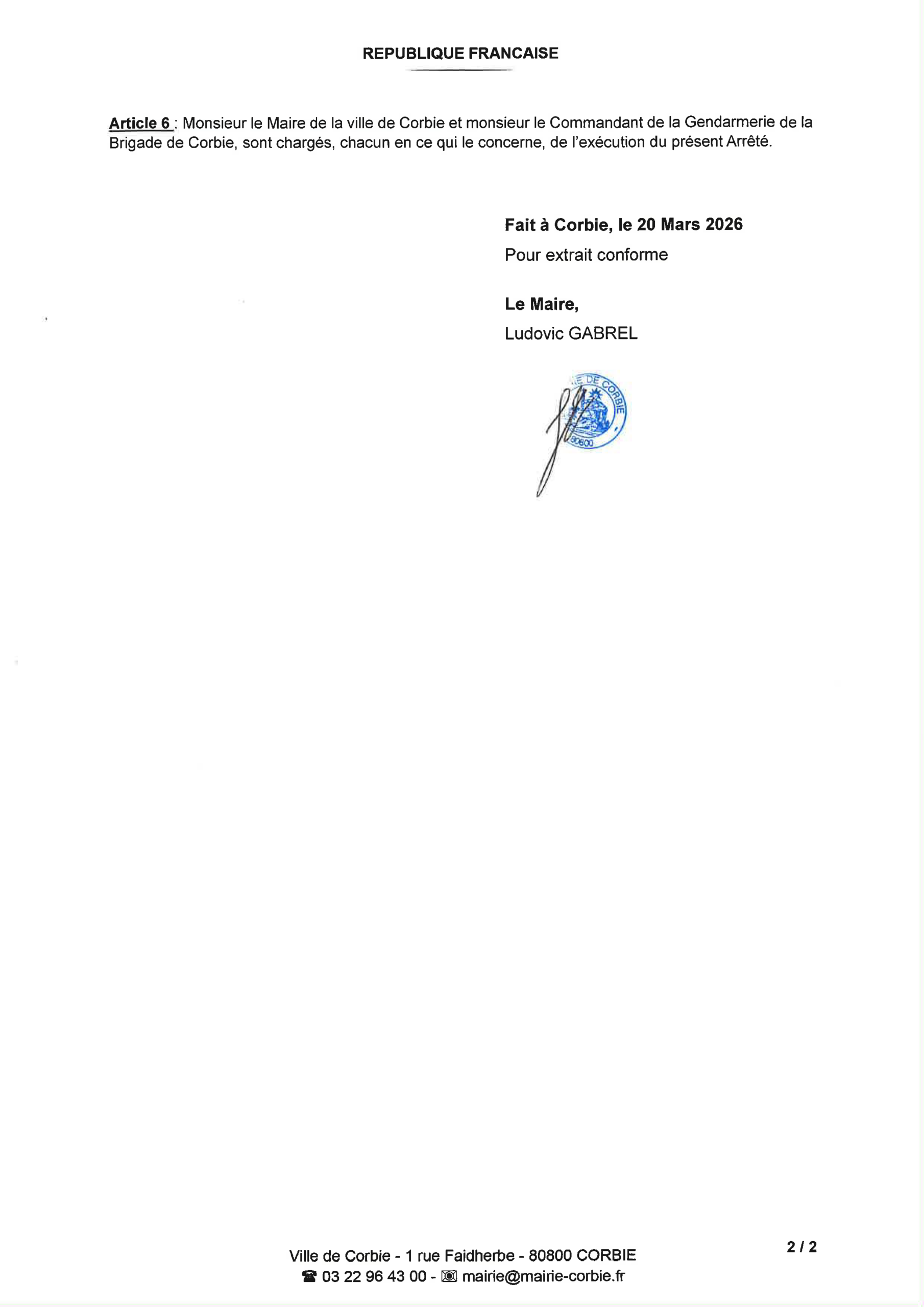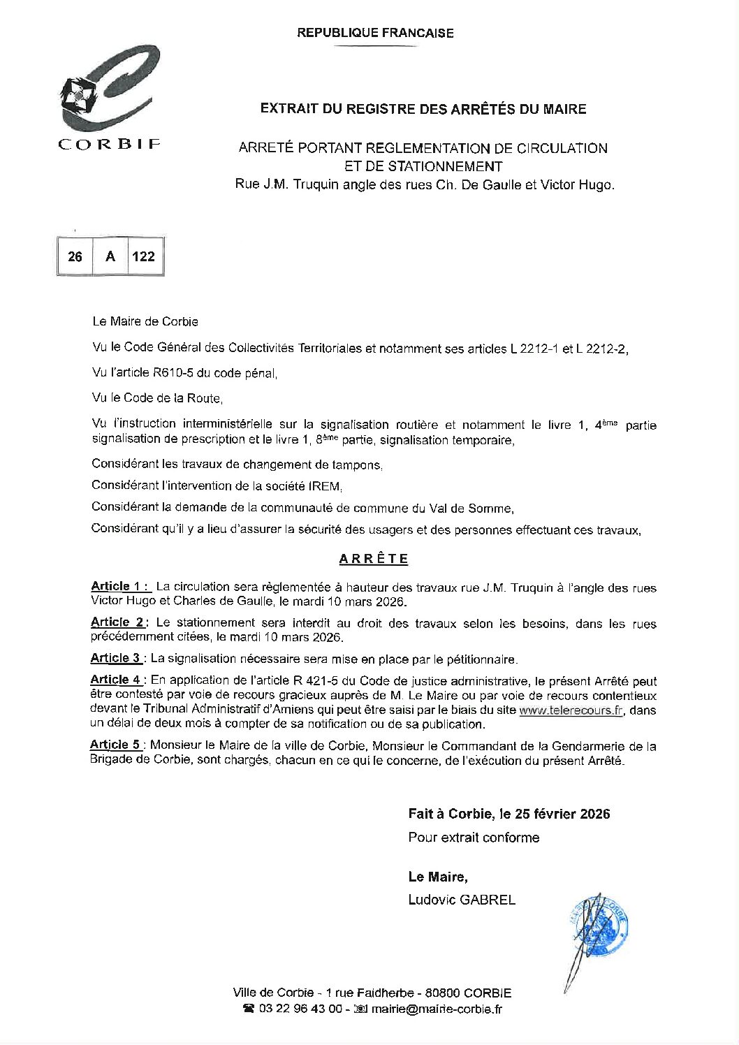 Arrêté – Circulation et stationnement rues Charles de Gaulle et Victor Hugo – Mars 2026
