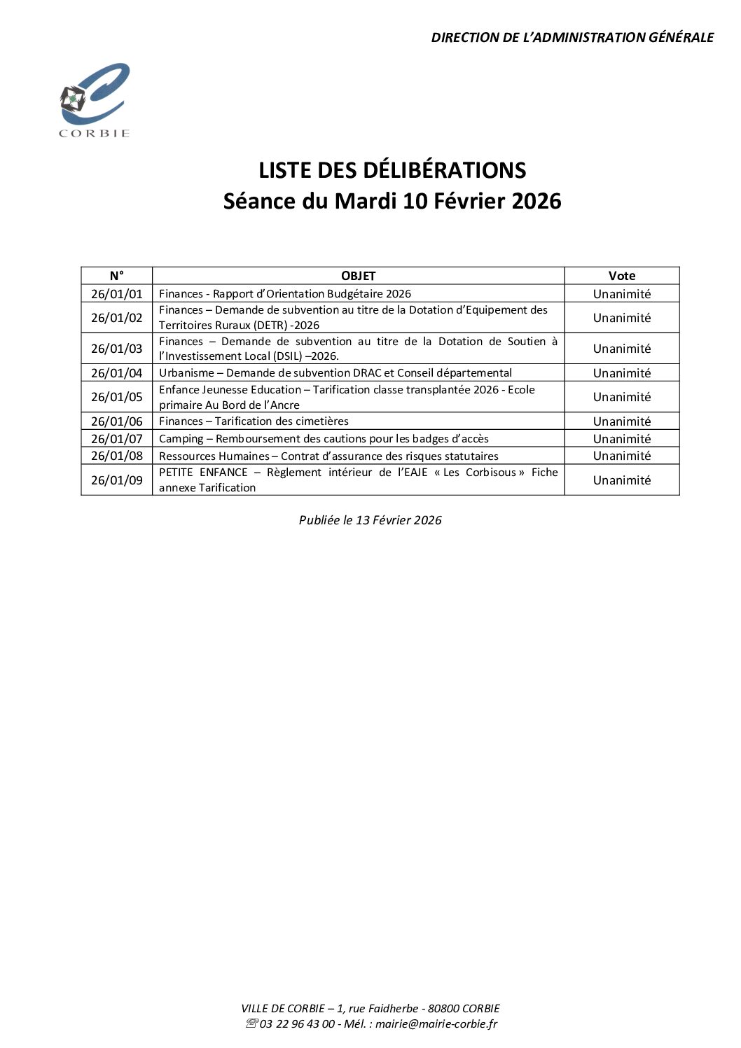 Séance du Mardi 10 Février 2026