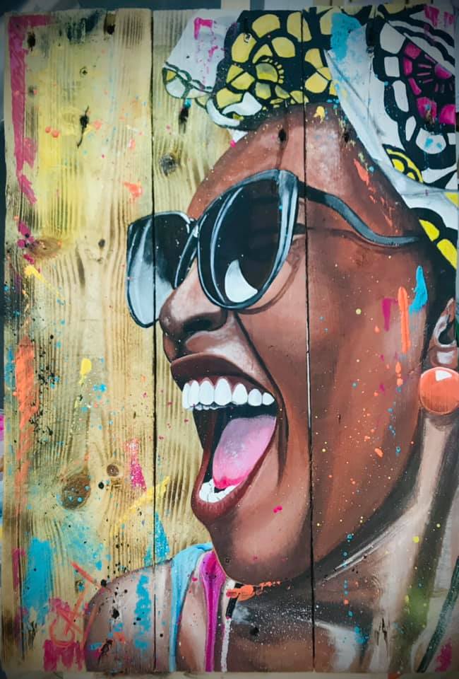 « Depuis dix ans, je peins des portraits à l’acrylique sur bois. Mon principal objet de travail est le portrait. Je peins le plus souvent à l’acrylique sur du bois (bois de palette, dosses de bois, autres). J’aime jouer avec les formes de ce support qui apporte une nouvelle dimension aux silhouettes que je réalise. Il permet de le fragmenter et d’attirer l’attention sur une partie du visage pour révéler une émotion particulière. Je fais le choix d’utiliser des couleurs vives et de jouer avec les contrastes pour emmener le portrait dans un univers aux inspirations Pop art et Street art. »